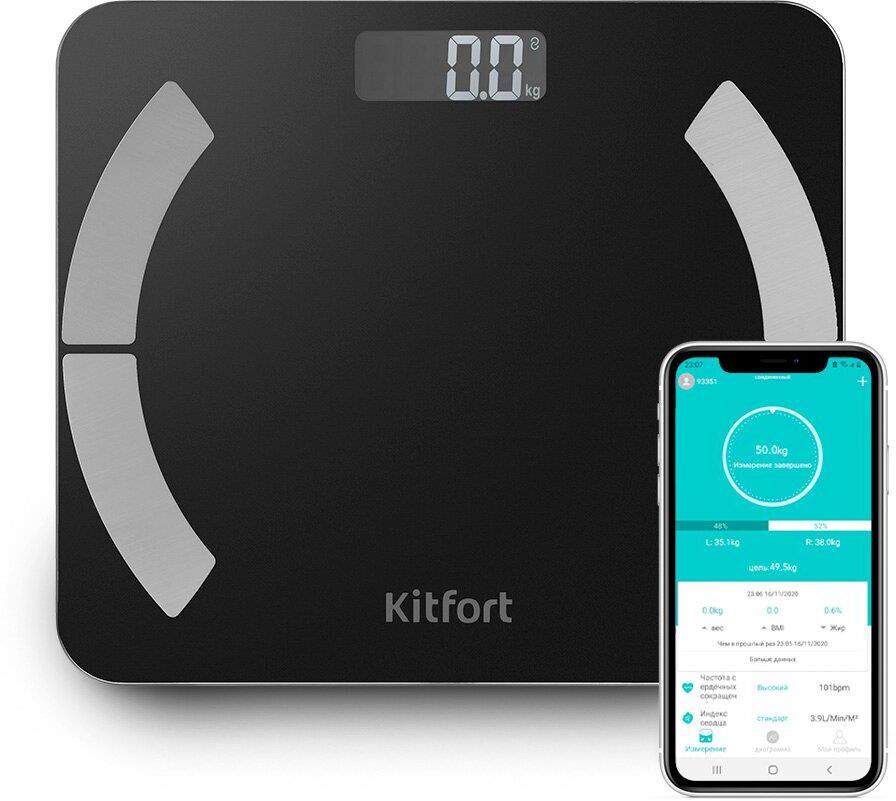 Весы KITFORT Напольные весы КТ-814, до 180кг, цвет: черный