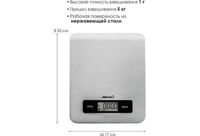 Весы кухонные ATLANTAATH-6196 (SILVER)