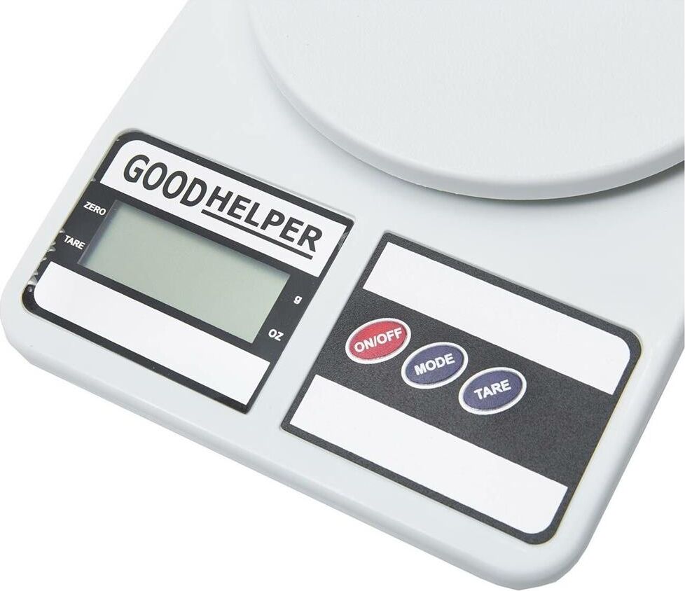 Выдерживают нагрузку до 10 кг, при цене деления 1 грамм, Функция «Тарирование» позволяет при взвешивании исключить вес посуды. Можно изменить единицы измерения с граммов на унции (кнопка Mode), Питание: 2 батарейки типа ААА, Индикатор замены элементов питания. Корпус выполнен из прочного пластика. Ножки прорезинены и прочно фиксируют устройство на столе.
