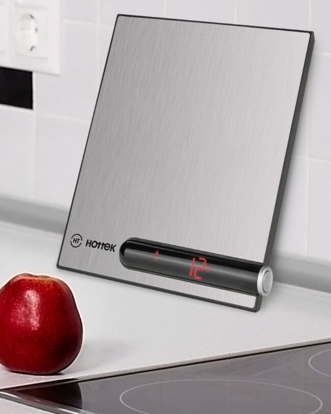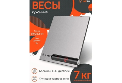Электронные кухонные весы с платформой для взвешивания из нержавеющей стали 18х21.2 см измеряют массу овощей, мяса, рыбы, специй, пряностей и круп с точностью о 0.001 кг. На устройстве можно задать удобную для вас единицу измерения: в килограммах, граммах или фунтах. Функция тарирования позволяет при взвешивании не учитывать массу емкости, в которой лежат продукты. Максимально допустимая масса взвешивания — 7 кг. При перевесе загорится индикатор перегруза. На LED-дисплее 12х2.5 мм с подсветкой расположен индикатор разряда батареи. Кухонные весы работают от 2 батареек типа "ААА" (в комплекте).