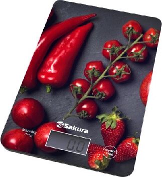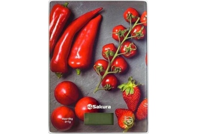 Электронные, нагрузка 8 кг, цена деления 1 г, ЖК дисплей, учет веса тары, автомат.отключение, индикатор перегрузки и заряда батарейки, питание 1*CR2032 , пластиковый корпус, рабочая поверхность из прочного стекла, рисунок: перцы.