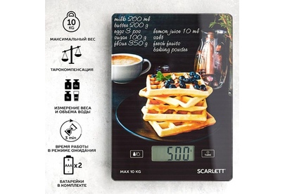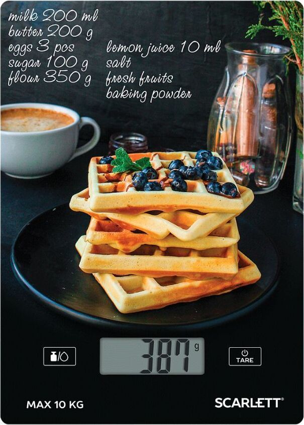 Электронные Кухонные весы Максимальный вес, кг: 10 Цена деления, г: 1 Единицы измерения: Граммы, фунты, унции, миллилитры Материал платформы: Ударопрочное стекло Индикатор заряда батарейки: Да Индикатор перезагрузки: Да Автоматическое отключение: Да Элемент питания: 2 батарейки типа ААА (включены в комплект) Цвет: Вафли