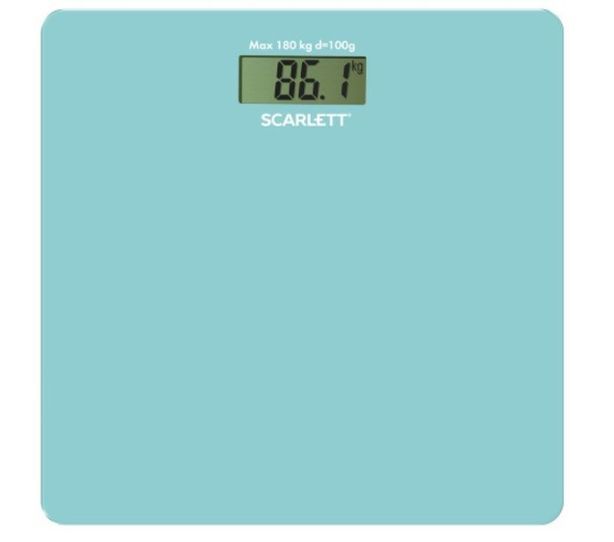 Тип весов - электронные. Максимальный вес - 180 кг. Точность измерения - 100 г. Автоматическое включение - Да. Автоматическое выключение - Да. Индикация перегрузки - Да. Индикатор уровня зарядки - Да. Количество цифровых дисплеев - 1 шт. Материал платформы - закаленное стекло. Прорезиненные ножки - Да. Батареи - 1 х CR 2032. Цвет - голубой.