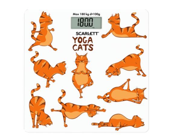 Тип: Электронные Материал корпуса: Стекло Максимальный вес, кг: 180 Цена деления, г: 100 Индикатор заряда батарейки: Да Индикатор перезагрузки: Да Автоматическое включение/выключение: Да Тип батарейки/B/шт.: CR2032/3B/1 Рисунок: Йога коты Прорезиненные ножки для устойчивости: Да Цвет: Белый
