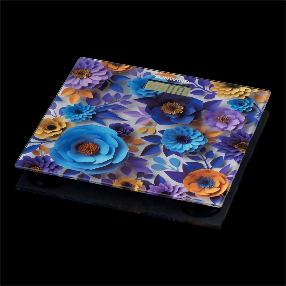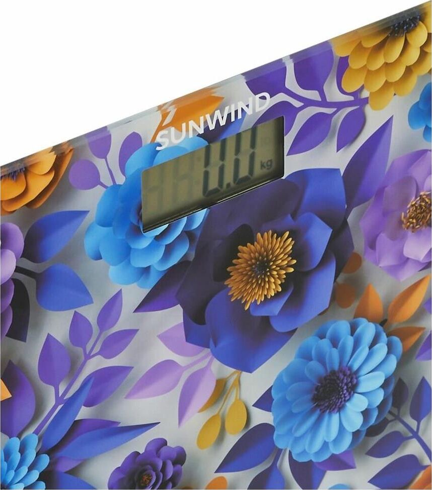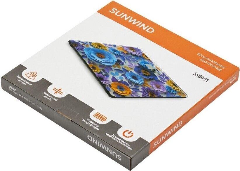 Напольные весы SUNWIND SSB051, до 180кг, цвет: рисунок Тип электронные Описание Электронные весы SUNWIND SSB050 простой и удобный способ контролировать свой вес. Материал корпуса весов - закаленное стекло, которое способно выдержать нагрузку до 180 кг, при этом точность измерения достигает 100 г. При перегрузке срабатывает индикатор. Питание весов от батарейки типа CR2032. Максимальная нагрузка 180 кг Цена деления 100 г Погрешность измерения 100 г Измерение в килограммах есть Особенности Автоматическое включение/отключение есть Индикатор перегрузки есть
