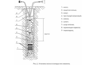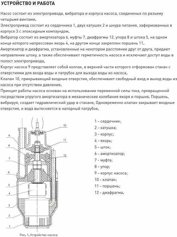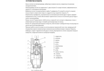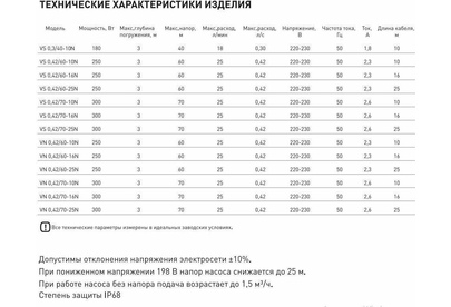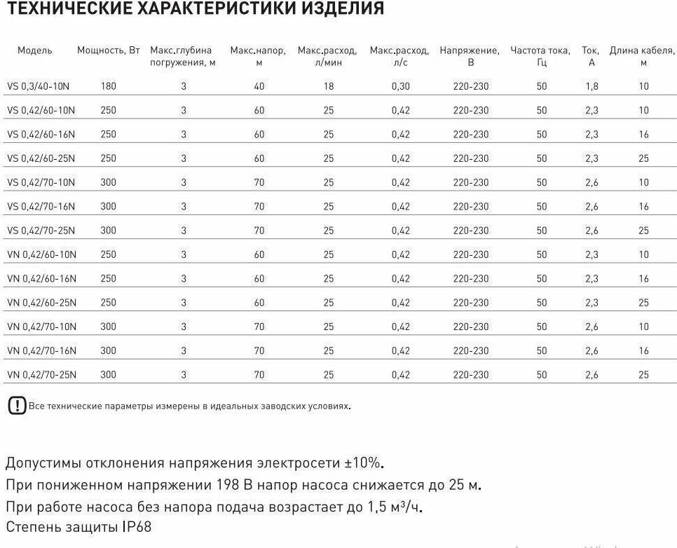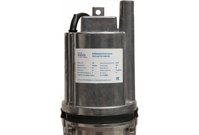 Насос вибрационный, нижний забор воды, мощность 300 Вт, максимальный напор 70 метров, максимальный расход 25 л/мин, длина кабеля 25 метров
