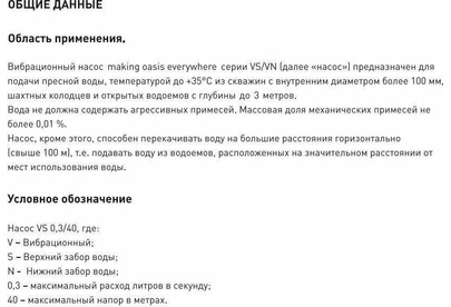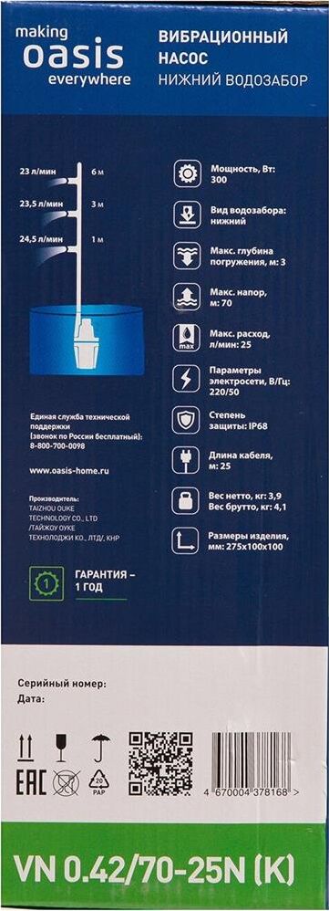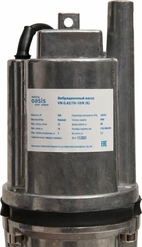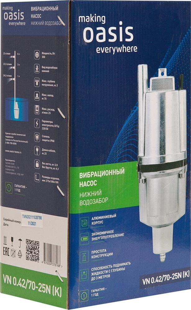 Вибрационный насос OASIS VN 0.42/70 - 25N - нижний забор