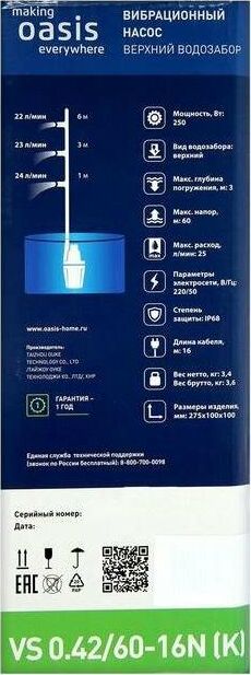 Вибрационный насос OASIS VS 0,42/60 шнур 16м