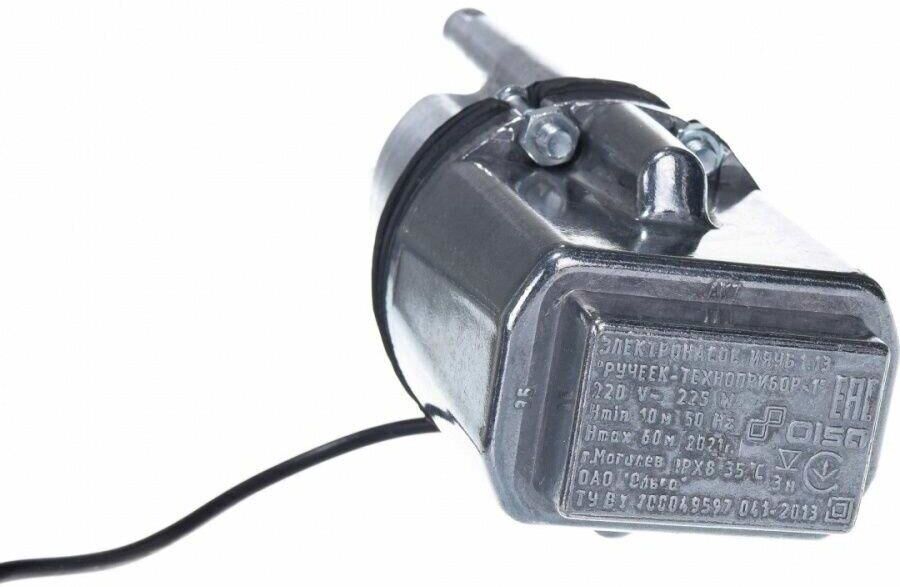 РУЧЕЕК Техноприбор - 1М" 40м. (кор.) н.з. 19.с медь (ТУ) (72) Вес, кг 5,1, Высота подъема, м 60, Глубина погружения, м 3, Мощность, Вт 225, Производительность, л/мин 18, Трубное соединение, дюйм елочка 3/4, Тип колодезный Вид погружной Мах температура жидкости, °С 35, Забор воды нижний, Длина кабеля, м 40, Допустимая температура жидкости, °С +35°C, Напряжение, В 220.