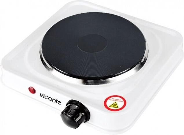 Плитка электрическая одноконфорочная, настольная, мощность: 1000 Вт, диаметр чугунной конфорки 155 мм, дисковый нагревательный элемент, прочное легкоочищаемое термостойкое эмалевое покрытие, защита от перегрева, плавная регулировка температуры, световой индикатор работы.