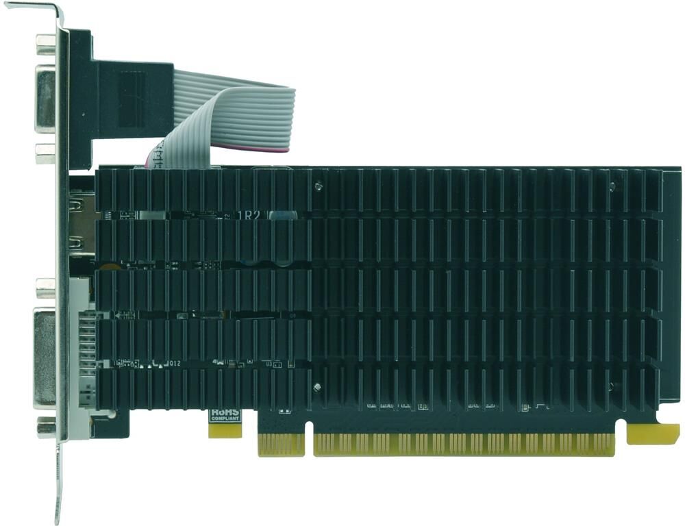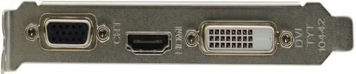 NVIDIA GeForce GT 710 (28 нм) @ 954 МГц • 1 Гб GDDR3 (64 бит) @ 1333 МГц • Разъёмы: DVI-I, поддержка HDCP, HDMI, VGA