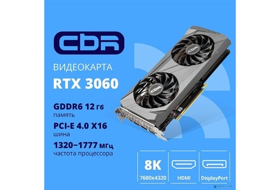 [Видеокарта] Видеокарта CBR RTX3060 12Gb GDDR6, 192bit, 1320-1777Mhz, 3*DP + 1*HDMI 2.1, 170W, Ret [VGA-STX3060-12G-RTL]