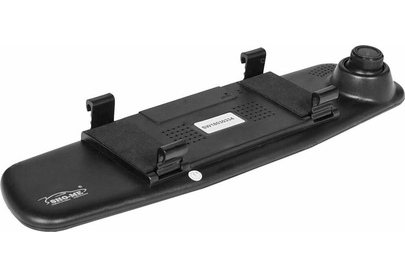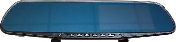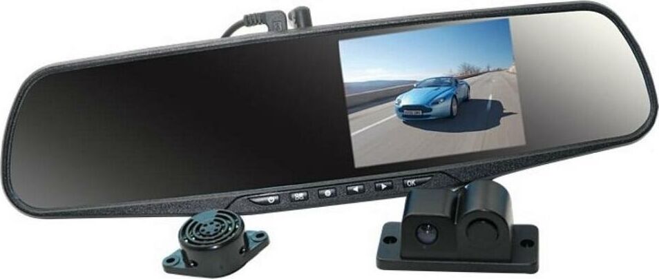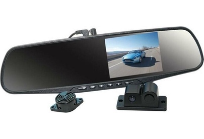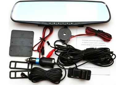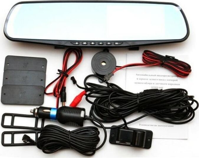 Видеорегистратор встроен в зеркало заднего вида, включает в себя камеру заднего обзора и датчик парковки. Высокое разрешение видеозаписи до 1920х1080р Full HD. Разрешение экрана – 480х272. Разрешение видео задней камеры 720х480. Обзор камер 170 градусов (передний и задний вид ). ЖК-дисплей размером 4.3 дюйма с высоким разрешением для отображения видео во время записи и воспроизведения. Вход для камеры заднего вида. Циклическая запись. Синхронная запись с 2-х камер. Датчик движения. Запись звука. G-сенсор (автоматическая блокировка файла во время аварии). Автоматическое начало записи при включении автомобиля.