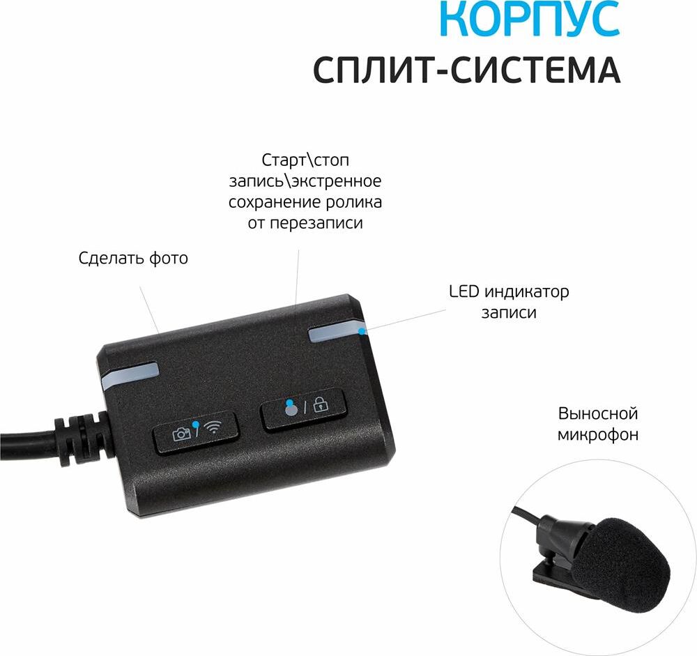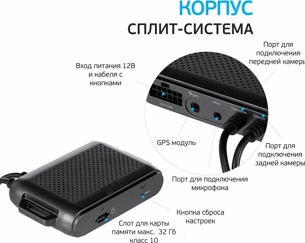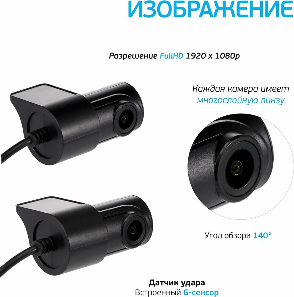 Угол обзора, ° 140°С Сжатие H.264 Разрешение видео (2 канала) Full HD 1920х1080, 30 кадр/сек Формат видеозаписи MOV G-сенсор с выбором чувствительности GPS Режим парковки Циклическая запись 1 мин / 2 мин / 3 мин / 5 мин Частота (рабочий ток) 50Hz / 60Hz Автовыключение Wi-Fi датчик: для подключения к смартфону Запись звука / Микрофон Питание от бортовой сети автомобиля Суперконденсатор 5Ф 3В Поддержка карт памяти microSD (microSDHC / microSDXC) до 64 Гб Язык English / Русский Память настроек Отображение информации приложение Присвоение видеозаписям координат и скорости движения Крепление на двустороннем скотче Вес устройства 94 г Вес комплекта 530 г Цвет корпуса чёрно-серый Размер устройства 9,5 х 5,4 х 2,2 см Размер упаковки 18 х 12 x 8 см