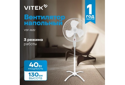 VITEK Вентилятор напольный VSF-1632 40Вт скоростей:3 белый (упак.:1шт)