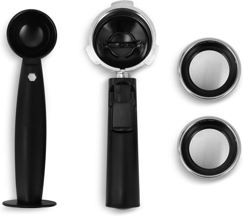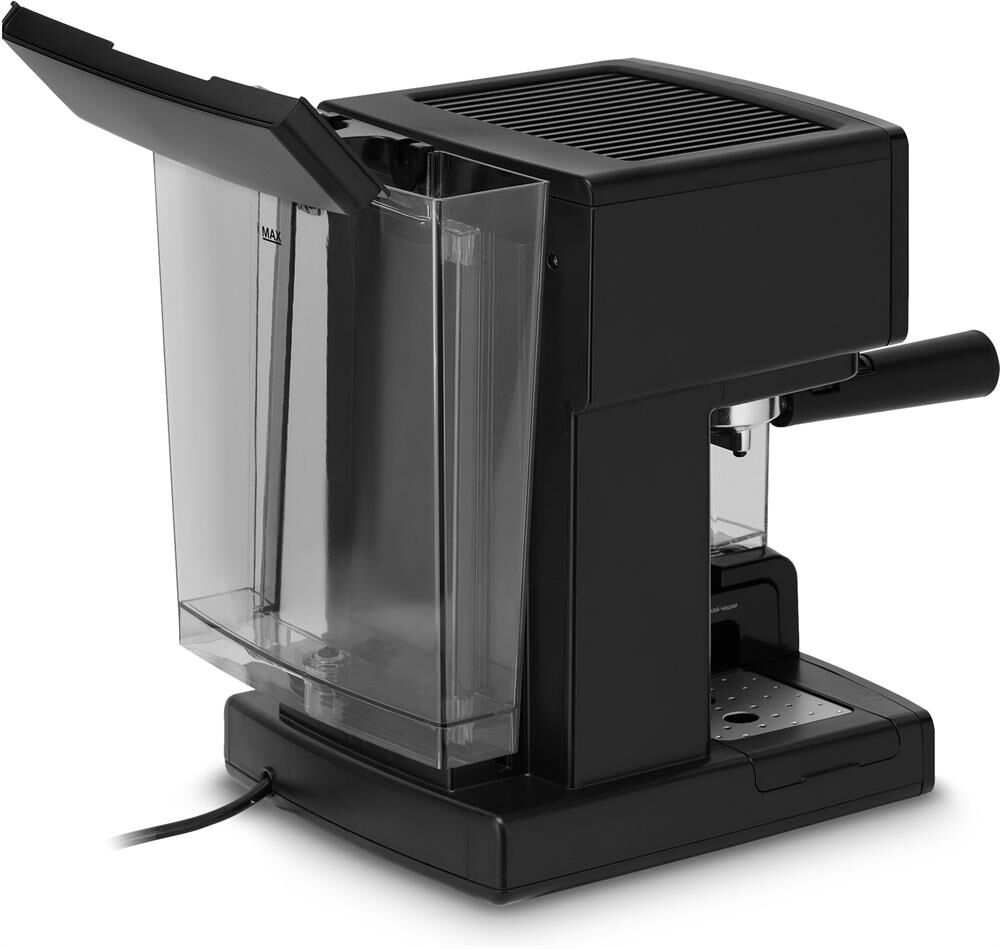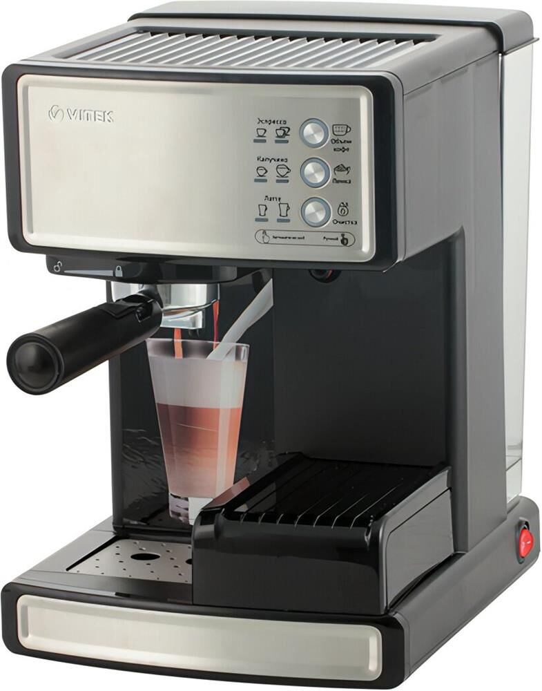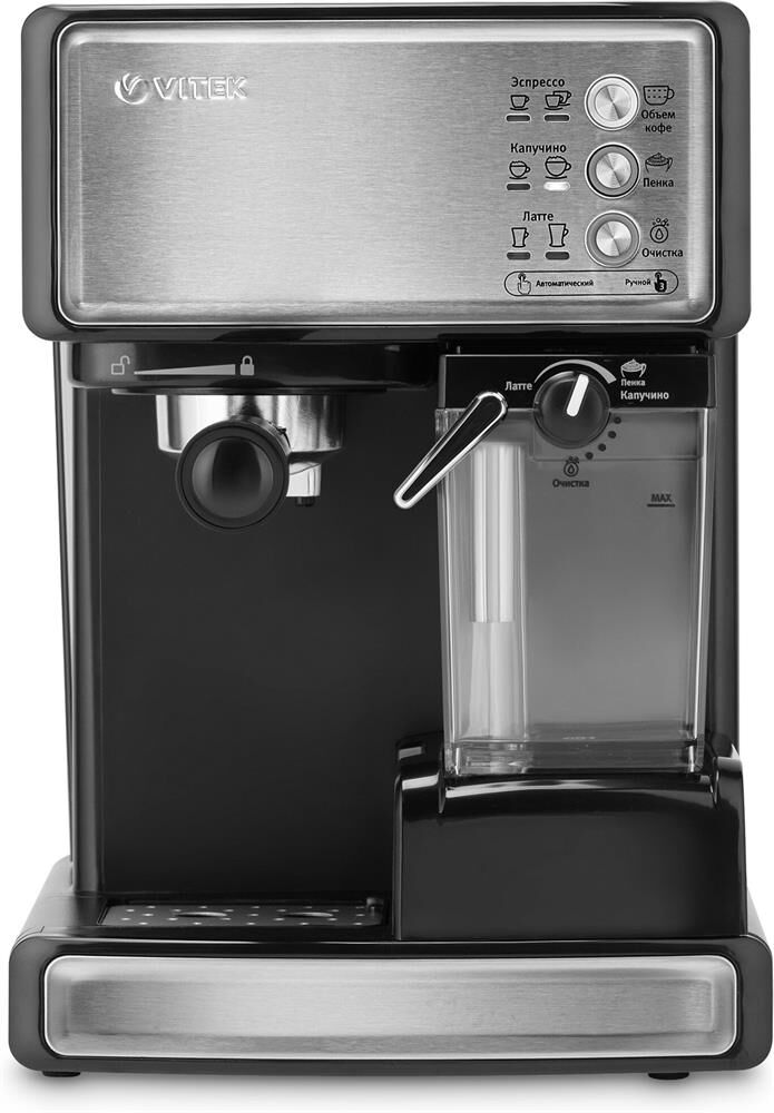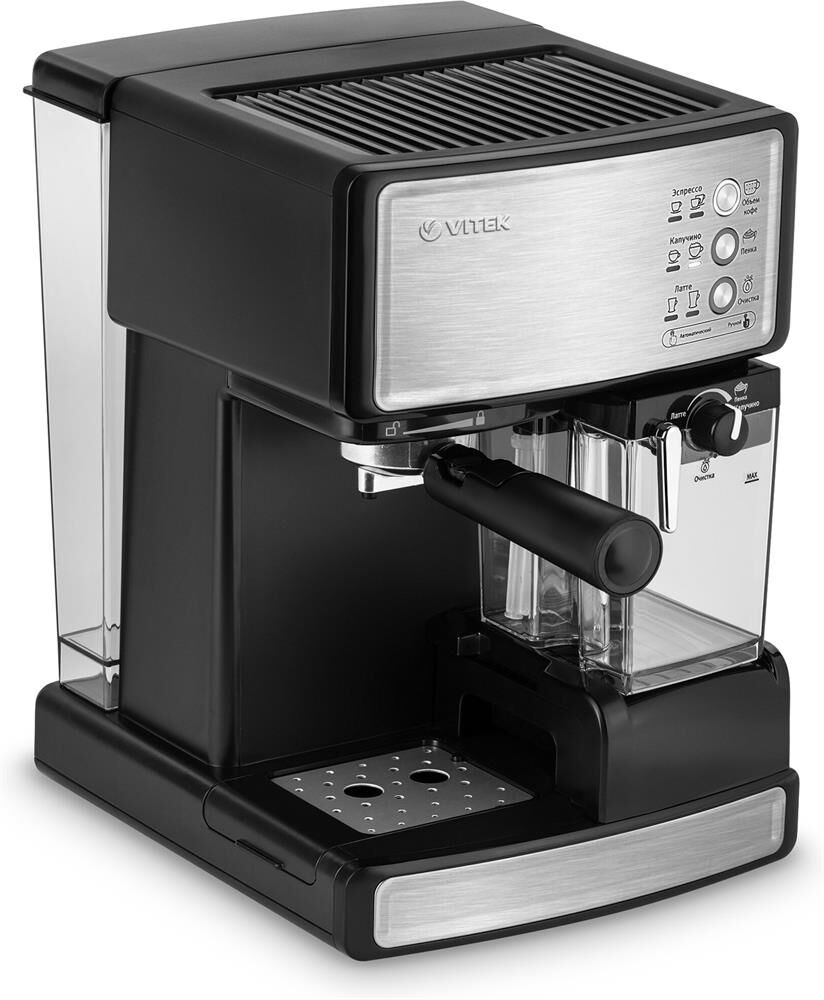 Кофемашина рожковая. Мощность: 1238 вт, Давление помпы: 15 бар, Съемный резервуар для воды: 1,65 литра, Капучинатор, Индикатор уровня воды, Индикация включения, Подогрев чашек, Подсветка, Приготовление капучино, Приготовление эспрессо, Съемный лоток для сбора капель, Материал корпуса: пластик, Тип используемого кофе: молотый, Цвет: Черный/серебро