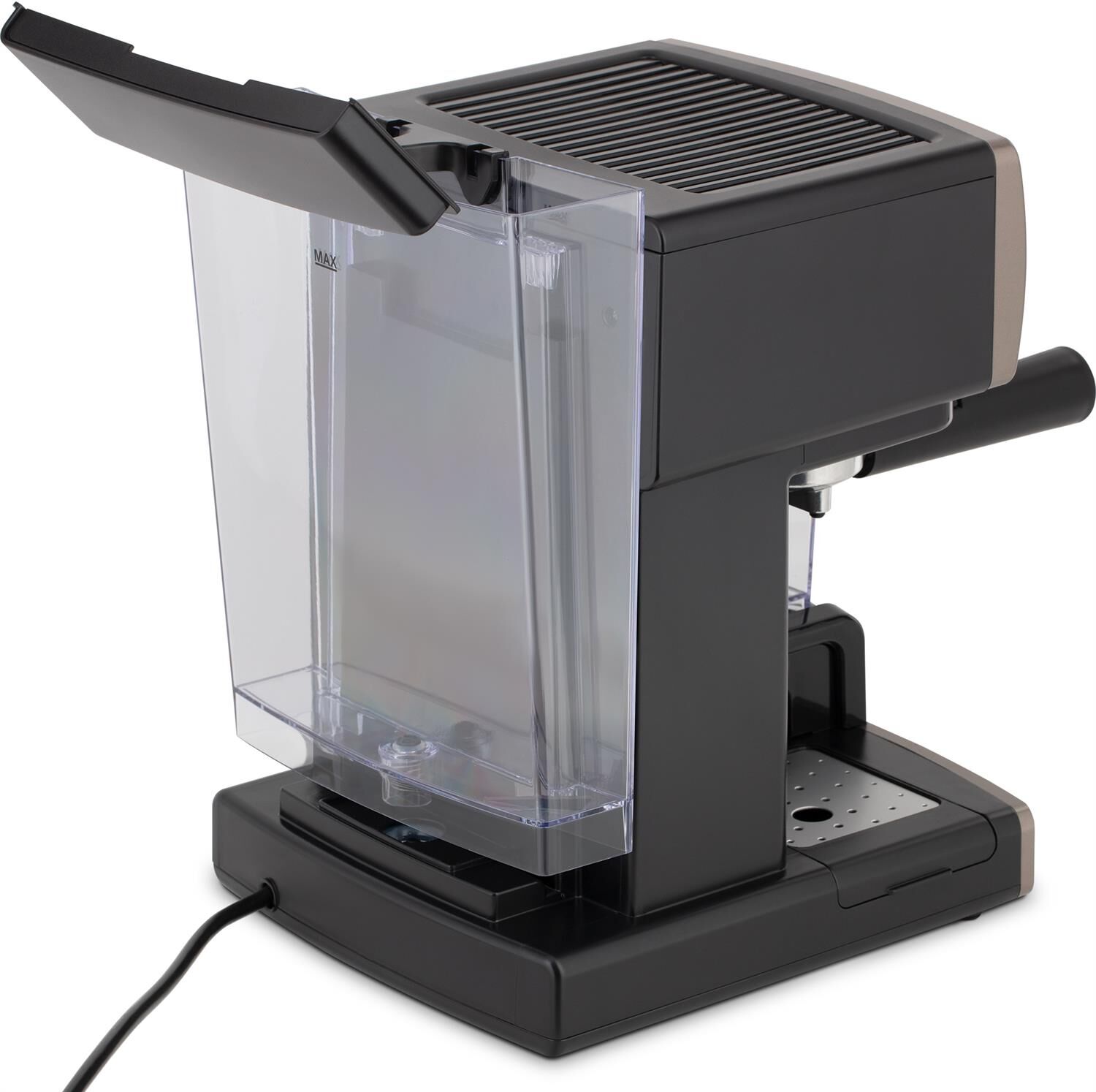 Кофеварка рожковая. Мощность: 1238 вт, Давление помпы: 15 бар, Съемный резервуар для воды: 1,65 литра, Капучинатор, Индикатор уровня воды, Индикация включения, Подогрев чашек, Подсветка, Приготовление капучино, Приготовление эспрессо, Съемный лоток для сбора капель, Материал корпуса: пластик, Особенности: автоматическое приготовление эспрессо, капучино, латте, Тип используемого кофе: молотый, Цвет: Черный/коричневый