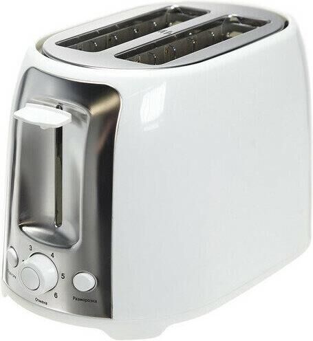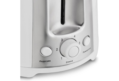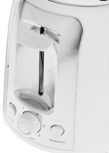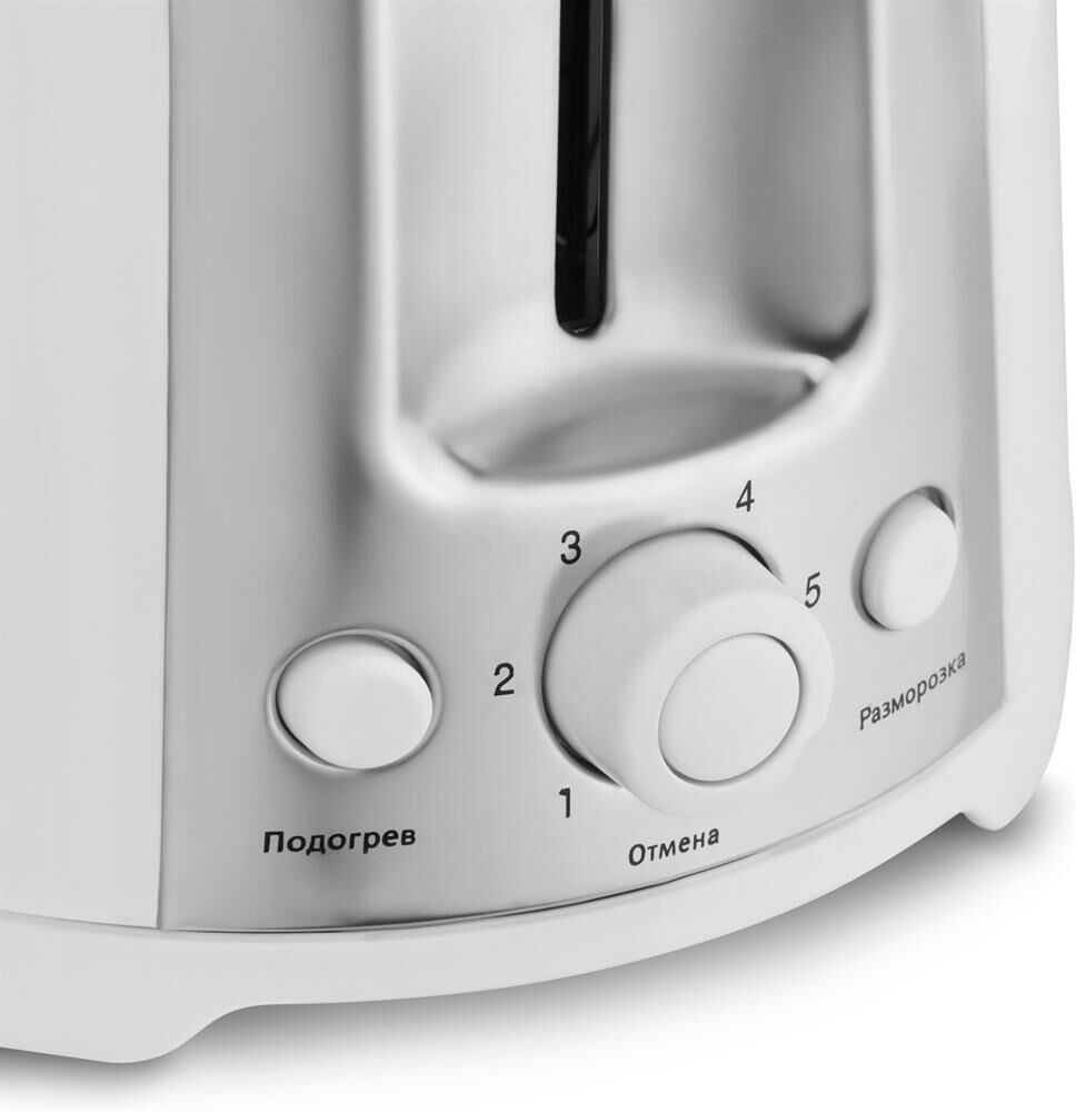 Мощность 750 Вт.Тостер на 2 ломтика.6 позиций для регулировки степени.Корпус из термостойкого пластика.Функция остановки.Решетка для подогрева булочек.Поддон для крошек.Отсек для хранения электрошнура.Электропитание 220- 240В ~ 50/60Гц