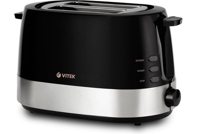 Тостер. Мощность: 850 вт, Материал корпуса: пластик, Количество тостов: 2, Количество отделений: 2, Регулировка степени обжаривания, Кнопка отмены, Функция размораживания, Функция подогрева, Поддон для крошек, Отсек для шнура, Решётка для подогрева булочек, Тип управления: механический, Термоизолированный корпус, Цвет: Черный/серебро.