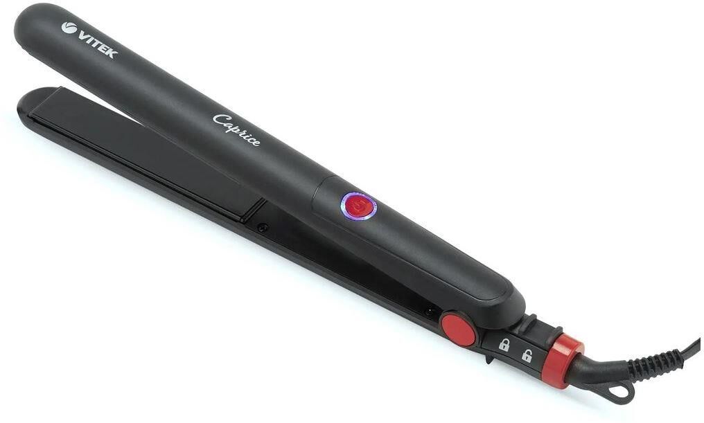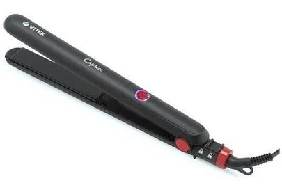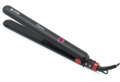 Выпрямитель для волос. Технология Tourmaline Ceramic, Максимальная температура нагрева: 200 С, Технология PTC Heating, Размер пластин (ШхД): 25х120 мм, Вращение шнура, Индикация включения, Керамическое покрытие насадок: Турмалиновое керамическое покрытие, Мощность 27-33 вт, Плавающие пластины, Регулировка температуры: 200 C, Блокировка ручки, Длина сетевого шнура: 1,8 метра, Цвет: Черный/красный