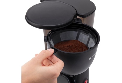 Кофеварка капельная. Мощность: 600 вт, Съемный резервуар для воды: 1,25 литра, Фильтр, Индикатор уровня воды, Индикация включения, Плита автоподогрева, Противокапельная система, Материал корпуса: пластик, Тип используемого кофе: молотый, Цвет: Черный