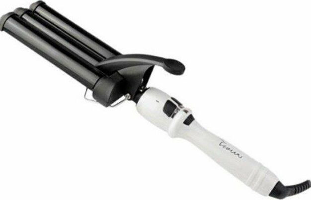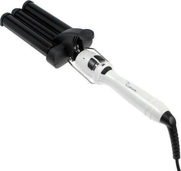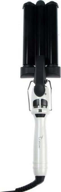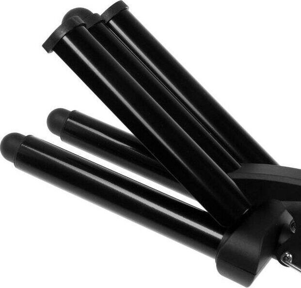 Щипцы для волос тройные. Мощность: 70Вт. Диаметр нагревательных элементов: 22мм. Максимальная температура нагрева 200°С. Керамическое покрытие. Защита от перегрева. Длина сетевого шнура: 1,85м. Вращение сетевого шнура на 360°. Цвет: белый/черный.