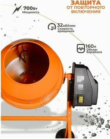 Бетомешалка ( 650 вт, венец/чугун, диаметр-375мм, объем-160 л, вес 60 кг )