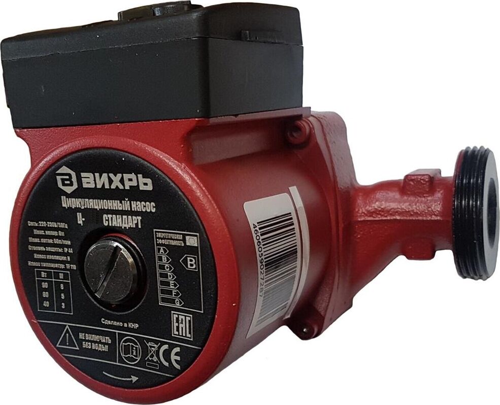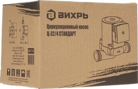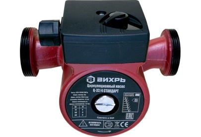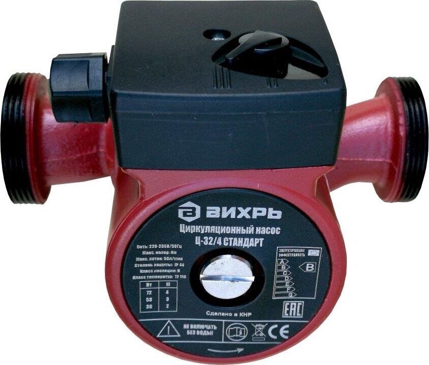 Циркуляционный насос Вихрь Ц-32/4 СТАНДАРТ. Мощность, Вт – 36/53/72; Напор, м – 2/3/4; Максимальный поток, л/мин – 50; Резьба на насосе, дюйм – 2;