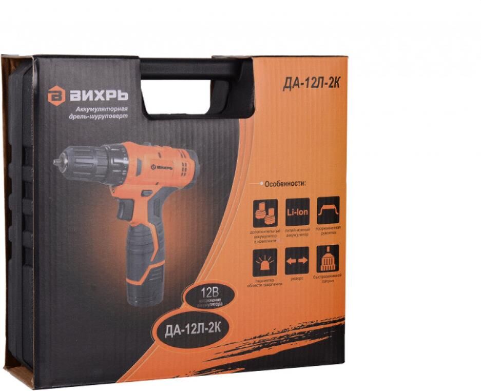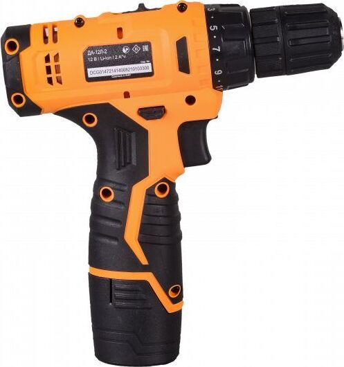 Дрель-шуруповерт. Напряжение аккумулятора - 12В. Емкость аккумулятора - 2А*ч. Тип аккумулятора - Li-Ion. Вращающий момент - 30Нм. Число оборотов - 0 - 400об/мин. Число оборотов (для 2 скорости) - 1400об/мин. Число ступеней крутящего момента - 21+1. Тип основного патрона - быстрозажимной.