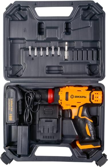 Напряжение сети адаптера питания, В, Гц 220-230В ~50Гц Тип двигателя Щеточный Бренд Вихрь Напряжение аккумулятора, В 18 Габариты упаковки 0.2 ? 0.2 ? 0.2 м Тип аккумулятора по способу установки Слайдер Тип аккумулятора Li-Ion Емкость аккумулятора, А*ч 2 Время заряда аккумулятора, ч 1 Максимальный крутящий момент, Нм 45/22 Максимальный диаметр сверления: дерево/металл, мм 30/12 Частота вращения, об/мин 0-400; 0-1400 Режим реверса Есть Диаметр патрона, мм 0.8-10 Быстросъёмный патрон Да Количество скоростей 2 Подсветка рабочей зоны Да Количество аккумуляторов 2 Вес, кг 2.42 кг Кейс да