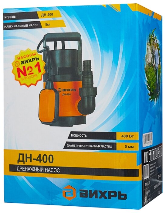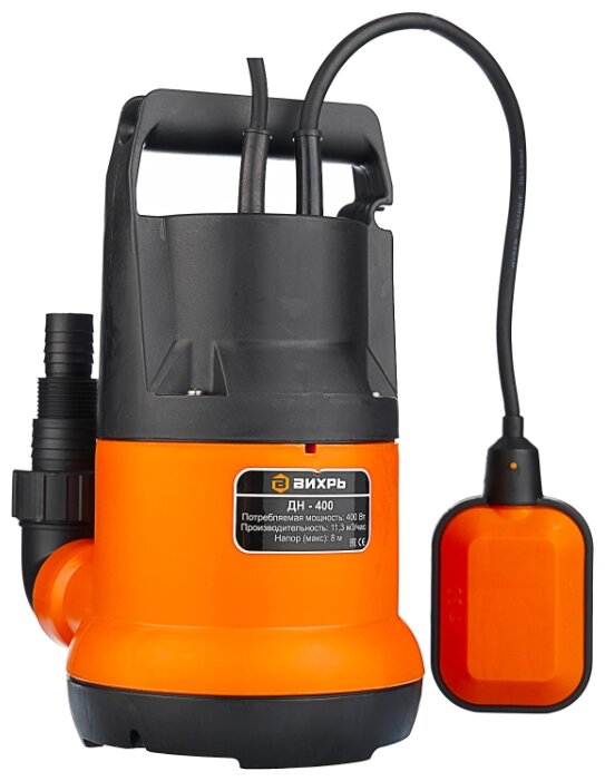 Мощность 400Вт, максимальная высота подъема 8м, максимальная подача 11,3 м3/час, диаметр пропускаемых частиц 5мм, материал корпуса пластик, электродвигатель асинхронный, однофазный с короткозамкнутым ротором.