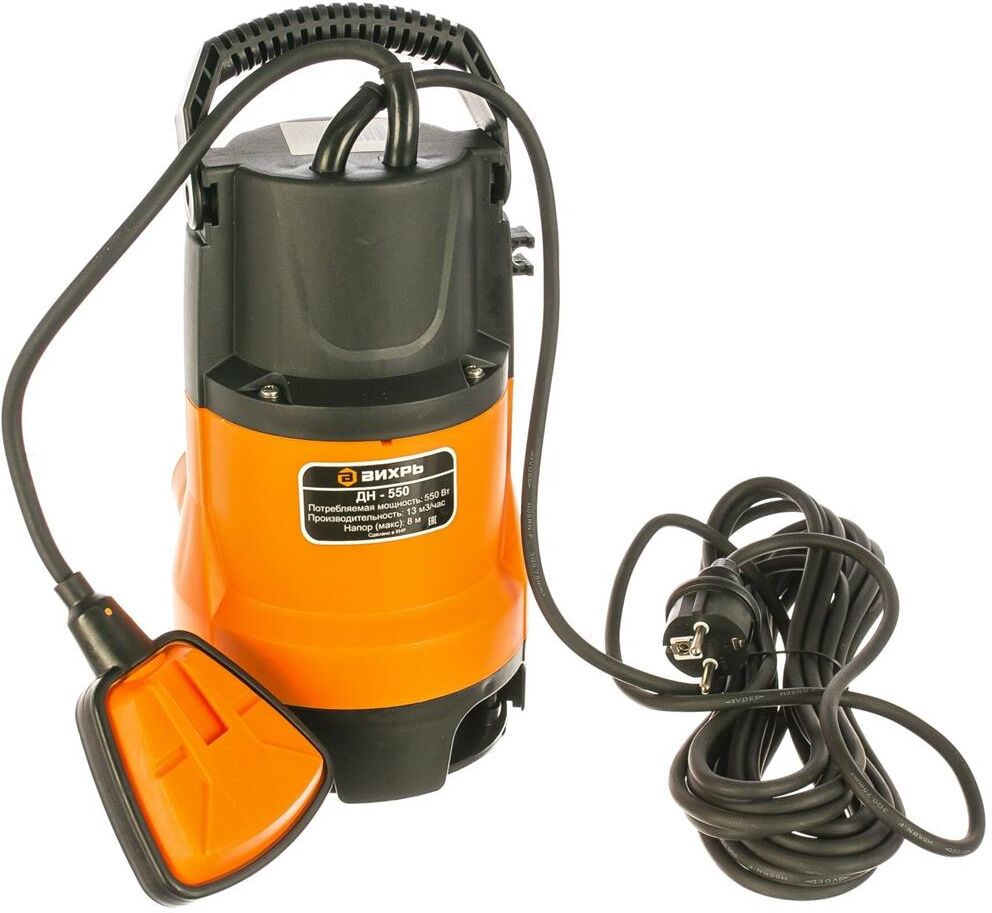 Материал крыльчатки; Стеклонаполненный полиамид (композитный пластик); Вес, кг; 3.8 кг; Напряжение питающей сети, В; 220-230; Бренд; Вихрь; Частота питающей сети, ГЦ; 50; Габариты упаковки; 0.22 × 0.29 × 0.16 м; Мощность, Вт; 550; Тип забора воды; Нижний; Максимальная высота подъема воды, м; 8; Применение (для какой воды); Грязная; Максимальная производительность, л/мин; 217; Диаметр выходного отверстия, дюйм; 1,5; Материал корпуса насоса; пластик; Диаметр пропускаемых частиц, мм; 35