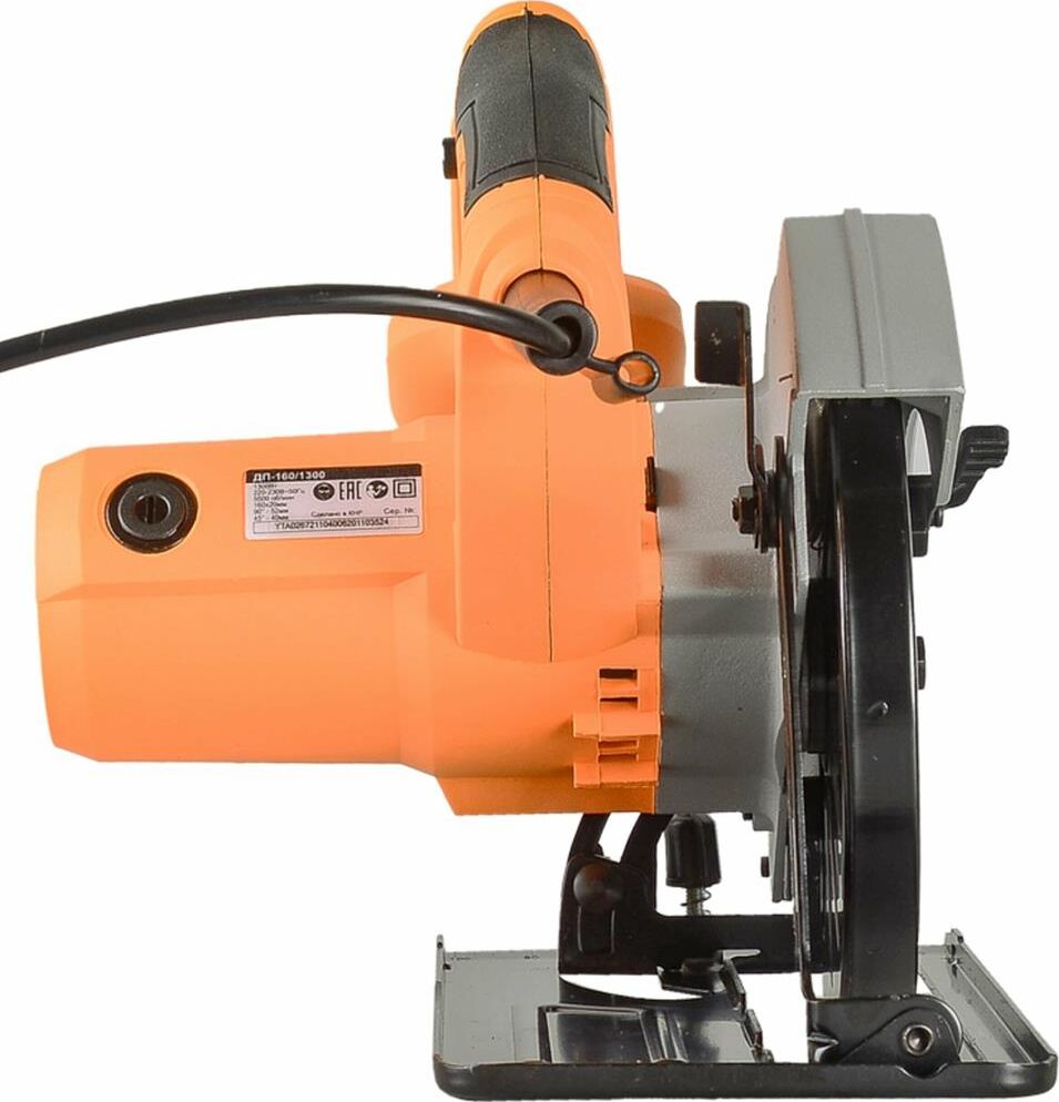 Вес 4,4кг, Max глубина пропила под углом 90° 52 мм, Мощность 1300Вт, возможность работы с направляющей шиной, Посадочный диаметр диска 20мм, Класс товара Бытовой, Диаметр 160мм, Наличие патрубка для подключения пылесоса, Max глубина пропила под углом 45° -32 мм, Число оборотов 4500 об/мин,