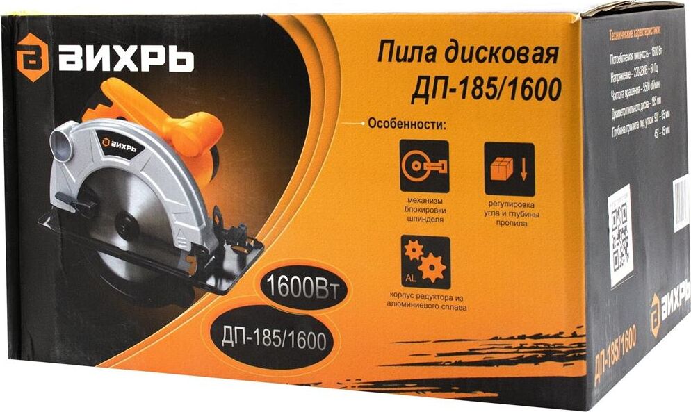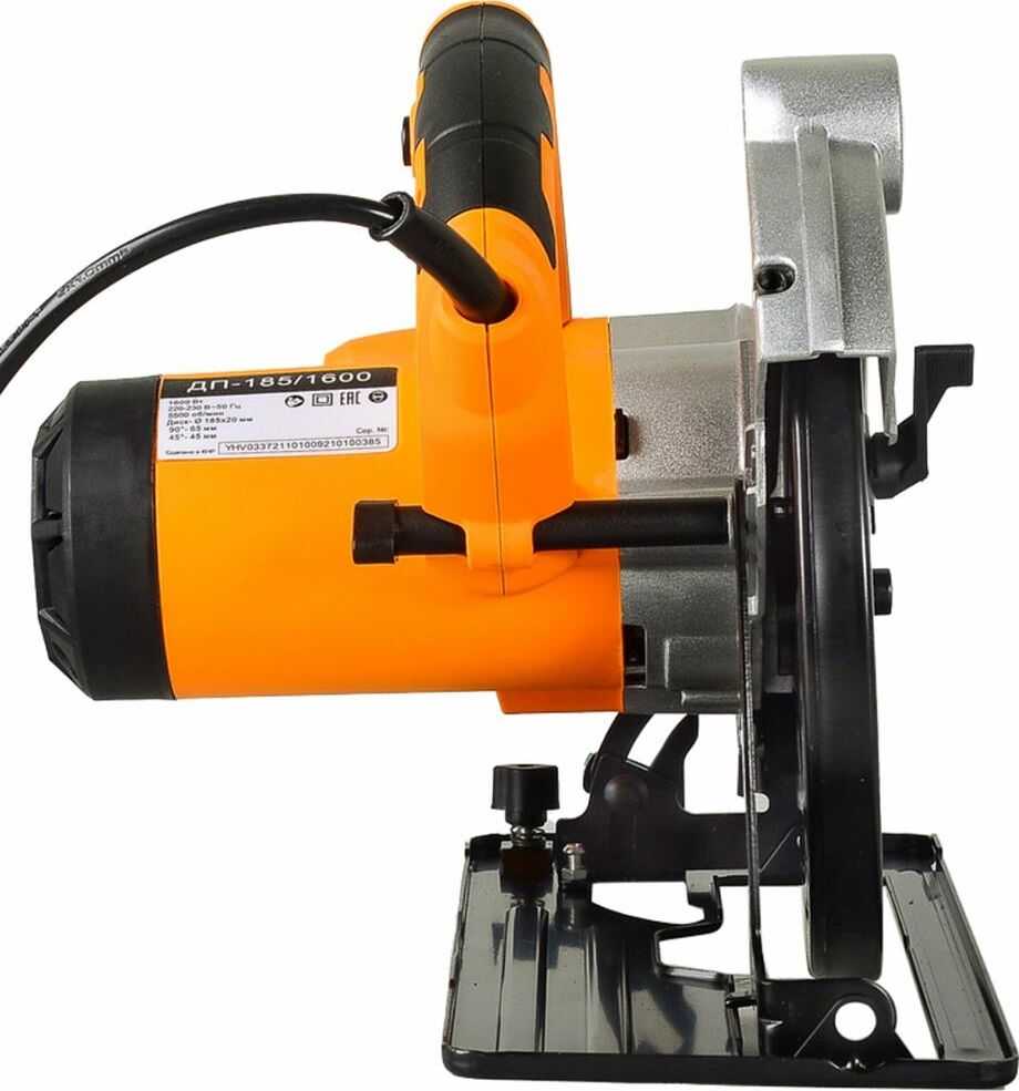 Вес 4,5кг, Max глубина пропила под углом 90° 65 мм, Мощность 1600Вт, возможность работы с направляющей шиной, Посадочный диаметр диска 20мм, Класс товара Бытовой, Диаметр 185мм, Наличие патрубка для подключения пылесоса, Max глубина пропила под углом 45° -45 мм, Число оборотов 4500 об/мин,