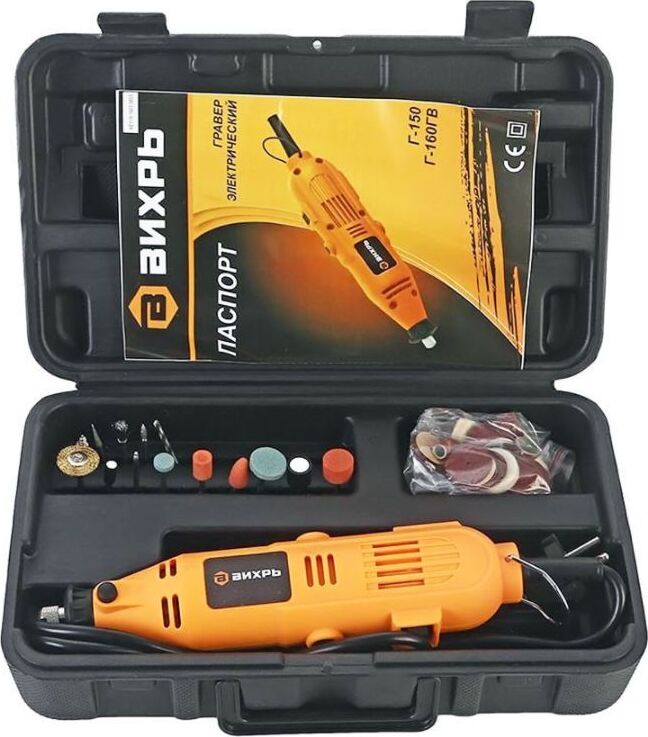 гравер, мощность 150Вт, число оборотов 8000-30000 об/мин, размер цанги 2,3-3,2мм.