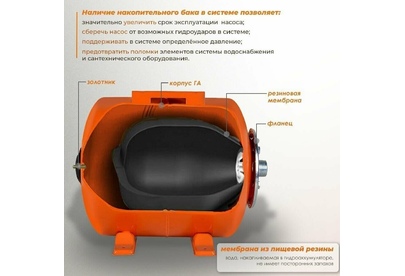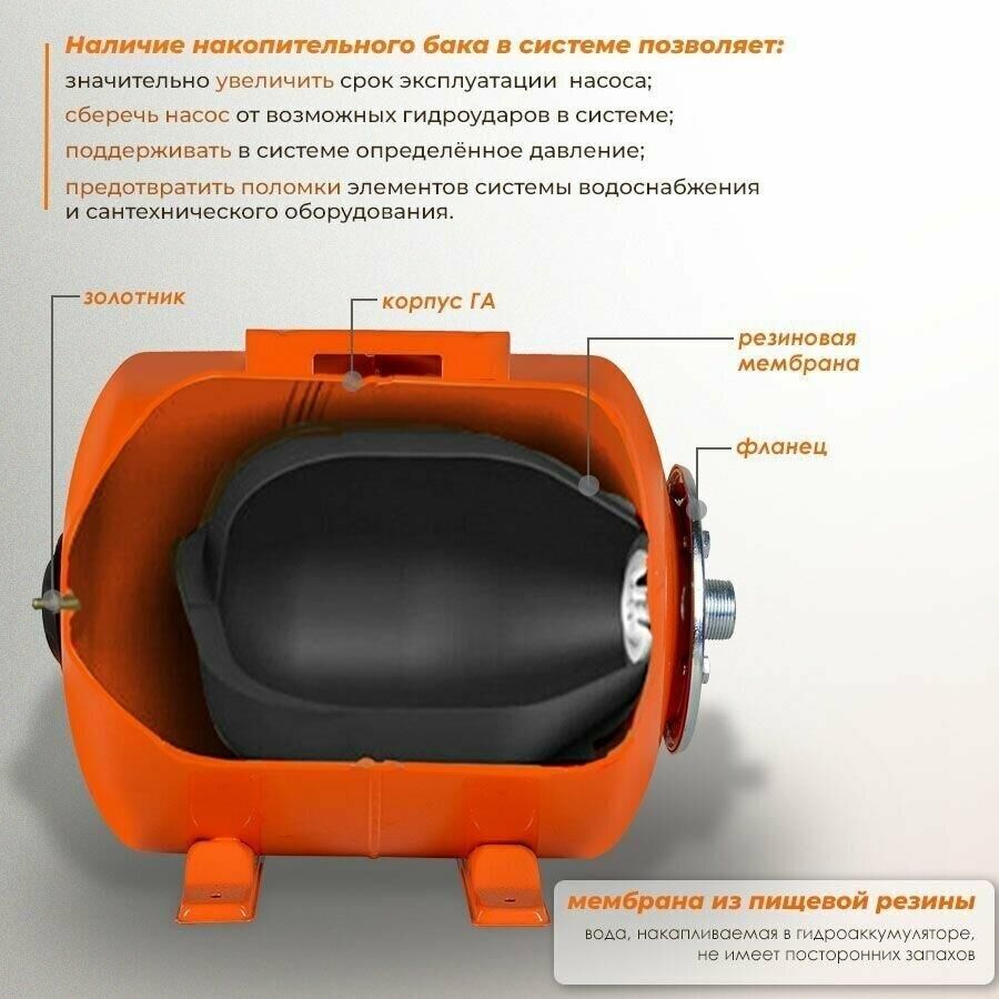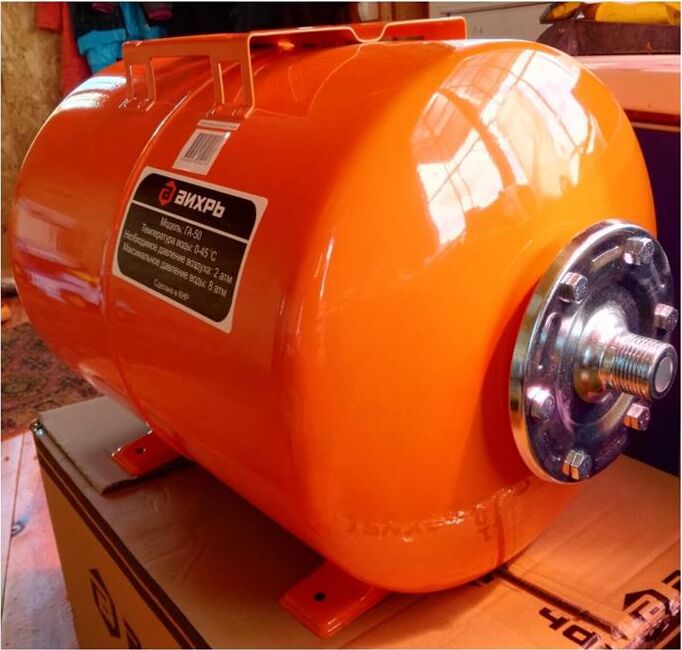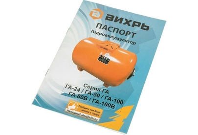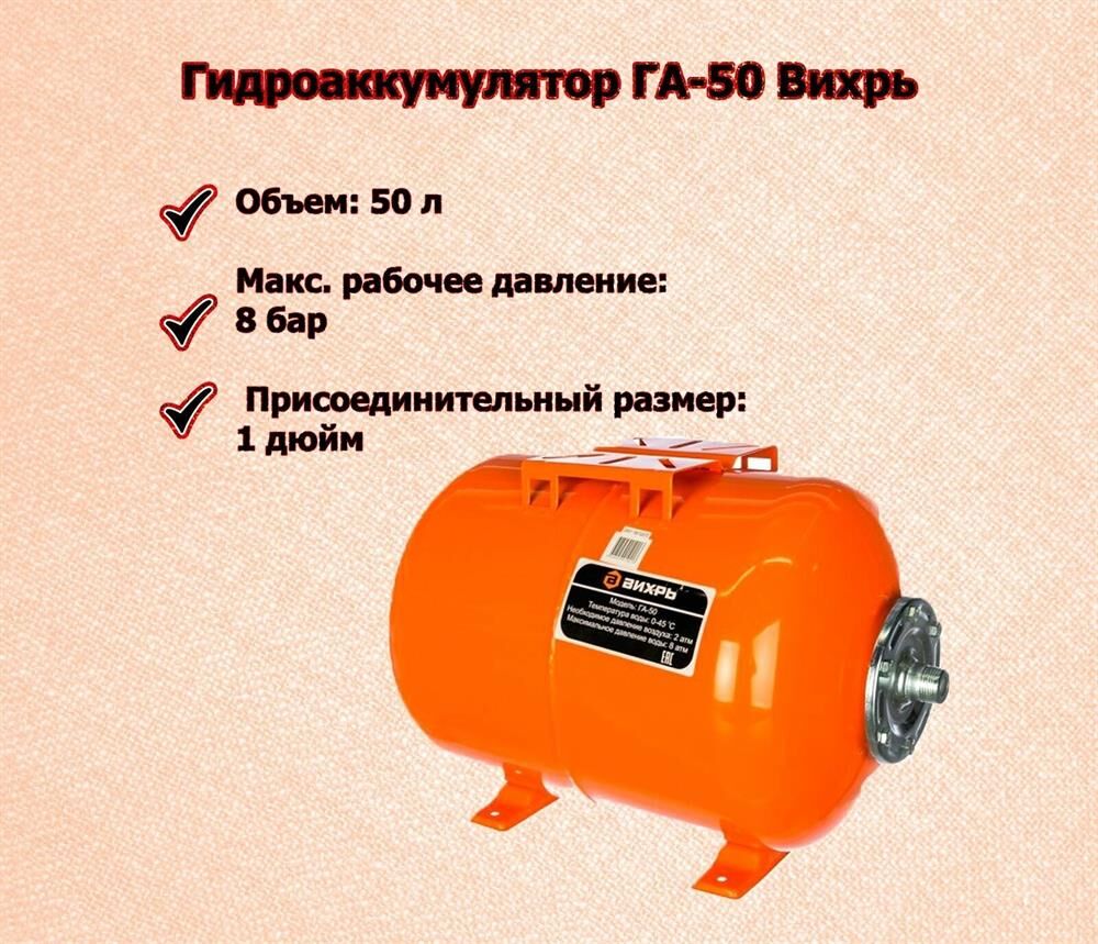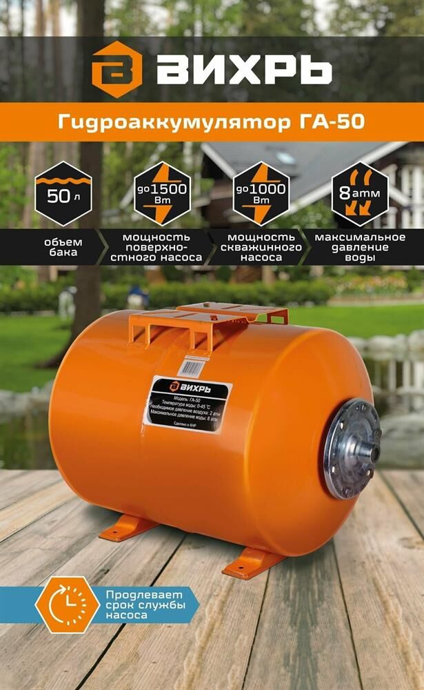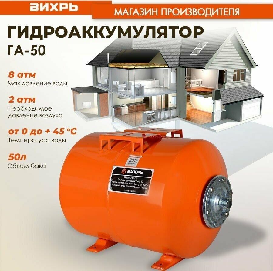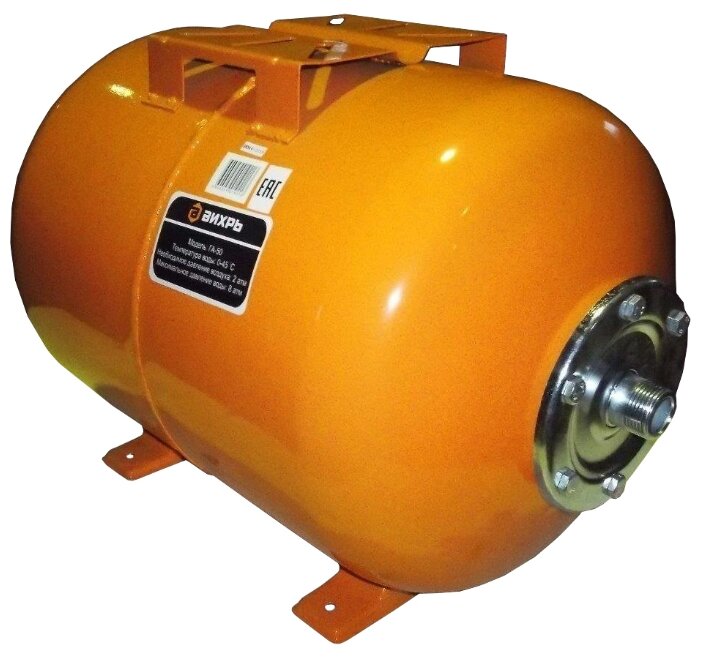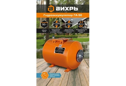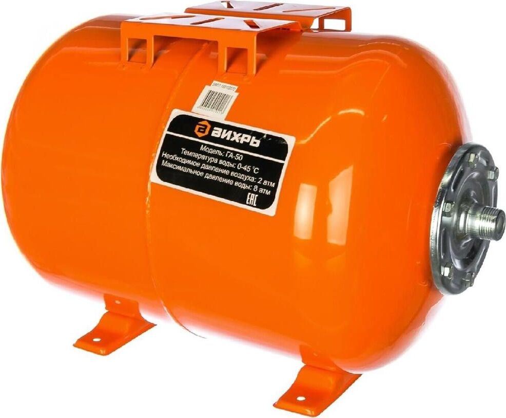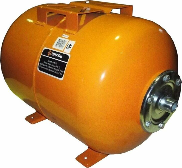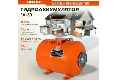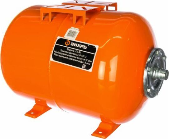 Гидроаккумулятор (бак) ВИХРЬ ГА-50. Объем бака, л – 50; Макс. давление, атм – 8; Тип расположения – горизонтальное;