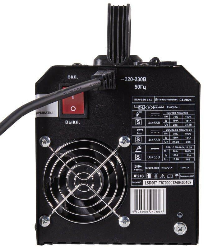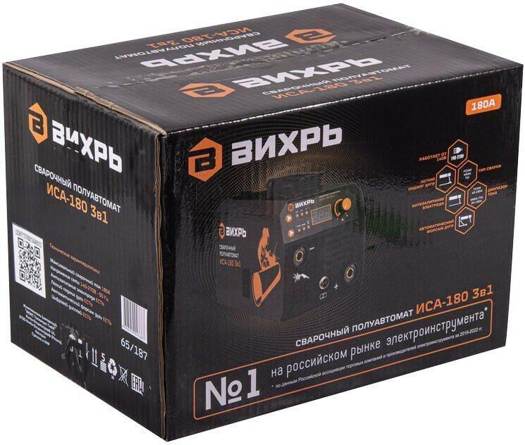 ВИХРЬ ИСА-180 3в1 инвертор FLUX, MMA,TIG-Lift 4.8кВт