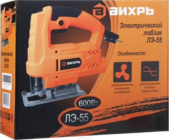 600 Вт, частота рабочего хода 0-3000 ход/мин, глубина пропила дерево/металл 55/6 мм, вес 1,5 кг.