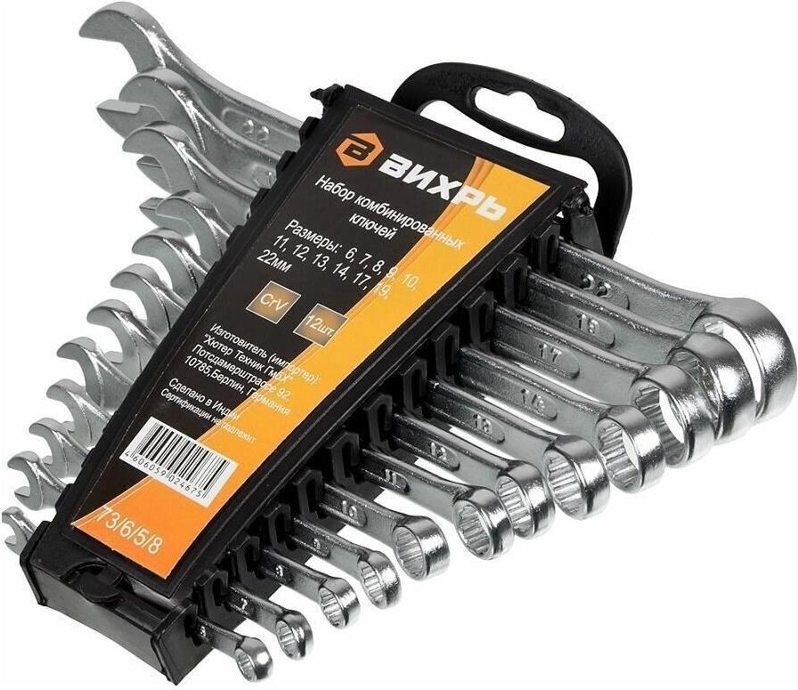 Набор комбинированных ключей 12 шт. 6 - 22 Вихрь включает в себя наиболее часто используемые размеры. Компактное хранение оптимально для удобной транспортировки.