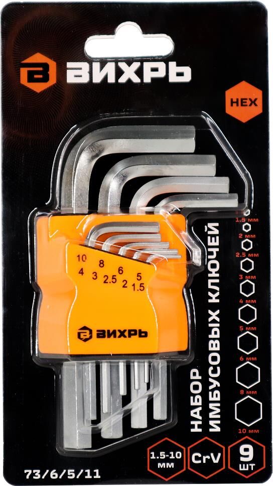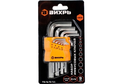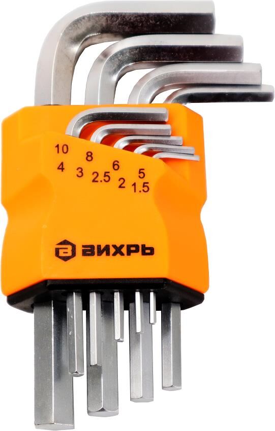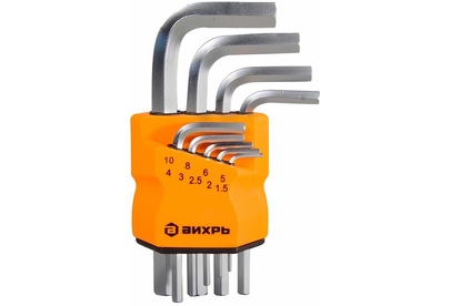 ВИХРЬ Набор ключей имбусовых HEX, 9 шт, 1.5-10 мм
