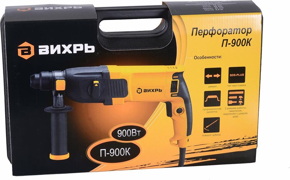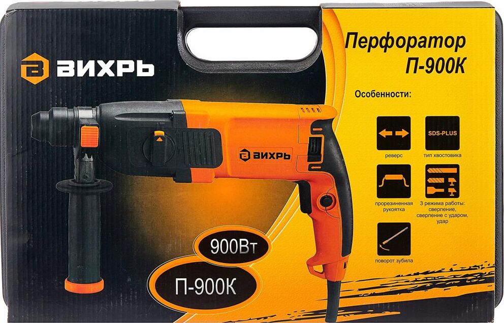 дополнительная рукоятка, ограничитель глубины сверления, блокировка кнопки включения