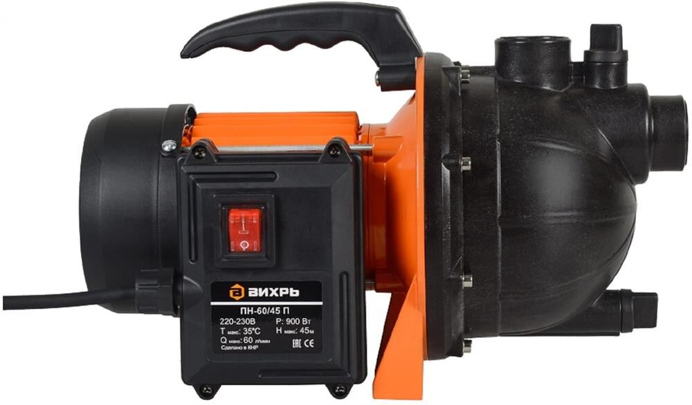 900 Вт, высота подъема – 45 м, 60 л/мин, G1”, корпус насоса – пластик, глубина всасывания – 9 м