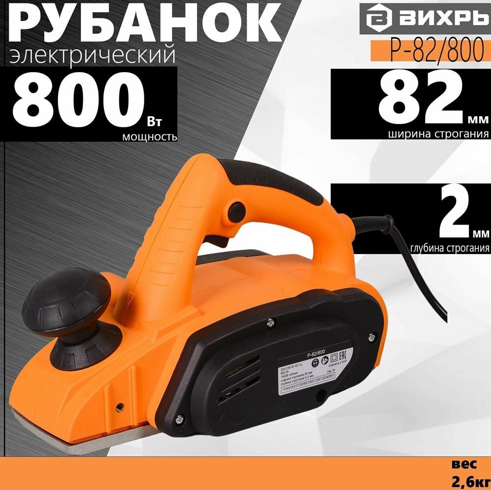 Мощность - 800Вт. Макс. толщина среза - 2мм. Макс. обороты - 16000об/мин. Ширина строгания - 82мм. Количество желобов - 1. Возможность подключения к пылесосу. Регулировка глубины строгания.