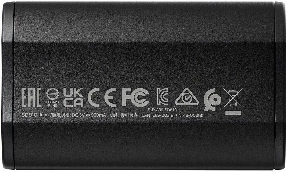 Количество дисков в устройстве: один. Объем накопителя: 4. Интерфейс подключения: USB-C. Форм-фактор диска: 1.8. Тип диска по исполнению: портативный. Особенности: Защита от воды, пыли и падений по стандарту IP68 Поддержка игровых консолей последнего поколения SD810 соответствует стандарту ударной прочности MIL-STD-810G 516.6. Электропитание: от порта USB. Материал корпуса: алюминий. Внешняя поверхность: матовая/глянцевая. Комплект поставки: Внешний диск, два кабеля (USB 3.2 Gen 2 Type-A и USB 3.2 Gen 2 x 2 Type-C), Краткое руководство. Максимальная скорость записи (Мбайт/с): 2000. Максимальная скорость чтения (Мбайт/с): 2000. Тип диска: SSD. Габариты упаковки (ед) ДхШхВ: 0.16x0.125x0.02. Вес упаковки (ед): 0.09. Пропускная способность интерфейса, до: 20 Гбит/с. Степень защиты: IP68/MIL-STD 810G. Гарантия: 36 мес.. Размеры (ШхВхГ): 44х72.7х12.24 мм. Цвет: черный. Вес: 41.7г. Поддержка ОС: Android, Linux, PS5, Windows, Xbox One, macOS. Защита от внешнего воздействия: водостойкий, противоударный. Разъемы и инте