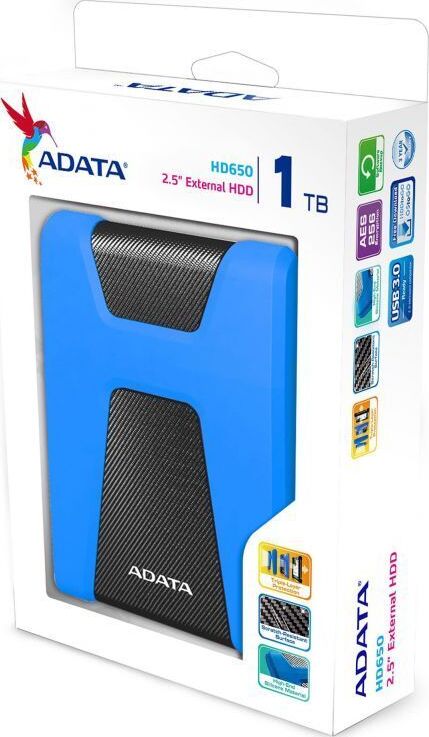 Внешний жесткий диск A-DATA DashDrive Durable HD650, 1ТБ, синий (AHD650-1TU31-CBL)