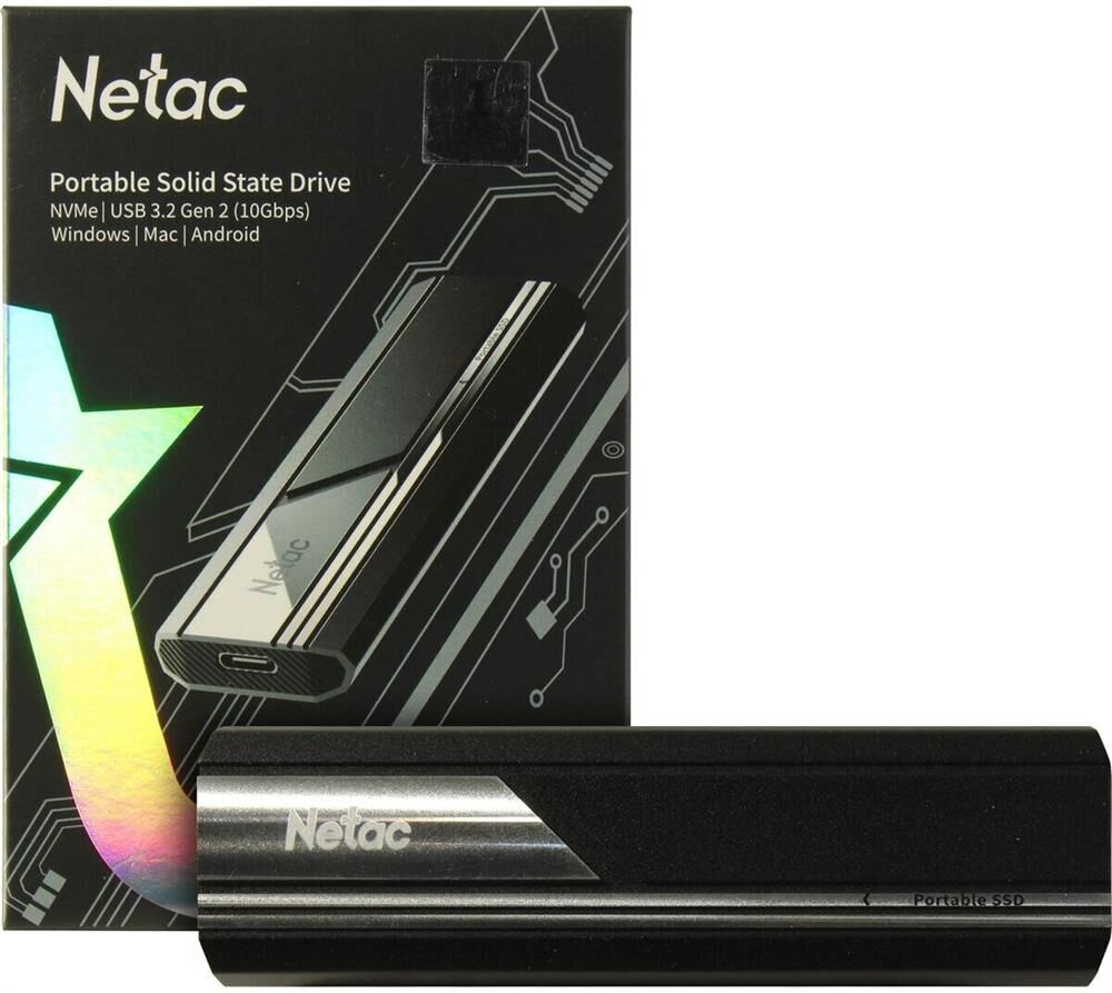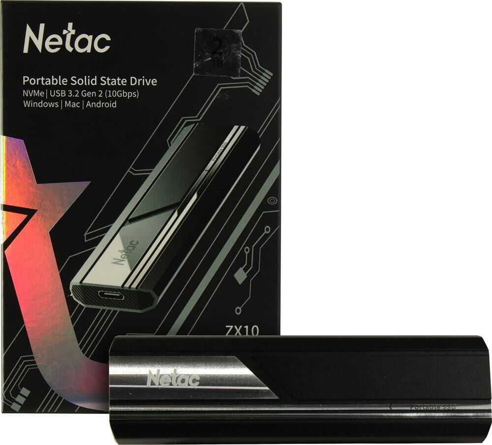 Внешний жесткий диск NETAC 1ТБ Внешний диск SSD ZX10 NT01ZX10-001T-32BK, USB-C, запись - 1050МБ/с, чтение - 1050МБ/с, чер
