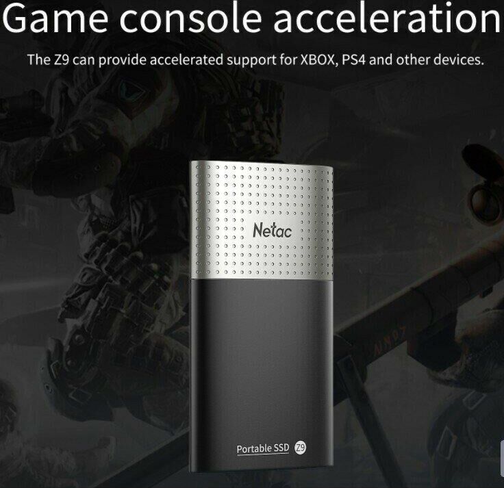Внешний жесткий диск NETAC 2ТБ Внешний диск SSD Z9 NT01Z9-002T-32BK, USB-C, запись - 480МБ/с, чтение - 550МБ/с, черный