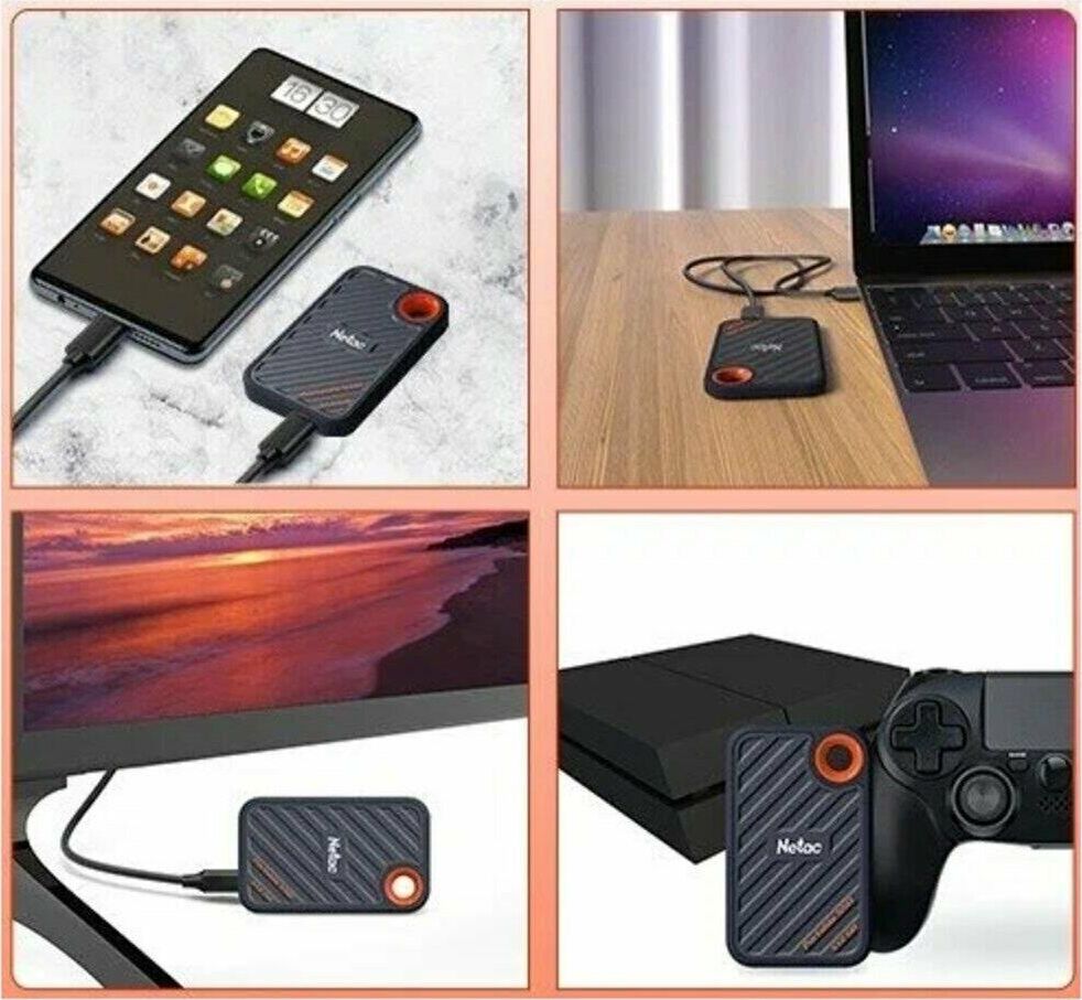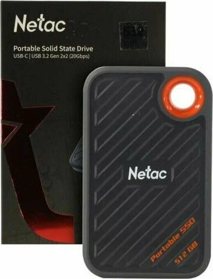 Внешний жесткий диск NETAC 512ГБ Внешний диск SSD ZX20 NT01ZX20-512G-32BL, USB-C, запись - 1800МБ/с, чтение - 2000МБ/с, с