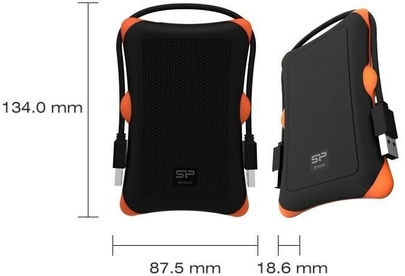 Внешний жесткий диск SILICON POWER 2ТБ Внешний диск HDD Armor A30 SP020TBPHDA30S3A, USB 3.0, черный
