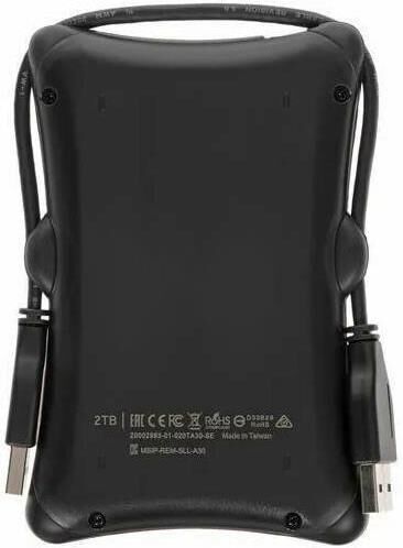 Количество дисков в устройстве: один. Объем накопителя: 2. Интерфейс подключения: USB 3.0. Форм-фактор диска: 2.5. Тип диска по исполнению: портативный. Особенности: Удобное крепление кабеля на корпусе устройства. Электропитание: от порта USB. Материал корпуса: резина/пластик. Внешняя поверхность: матовая. Комплект поставки: внешний диск, кабель USB, инструкция. Тип диска: HDD. Габариты упаковки (ед) ДхШхВ: 0.15x0.1x0.03. Вес упаковки (ед): 0.3. Пропускная способность интерфейса, до: 5 Гбит/с. Степень защиты: MIL-STD-810G. Гарантия: 36 мес.. Размеры (ШхВхГ): 87.5х134х18.6 мм. Цвет: черный. Вес: 205г. Тип резервного копирования: по запросу. Разъемы и интерфейсы на устройстве: USB Micro-B 3.0 (f). Поддержка ОС: Linux, Windows, macOS (после форматирования). Защита от внешнего воздействия: водостойкий, противоударный. Способ защиты данных: аппаратное шифрование (AES-256). Форм-фактор: портативный, 2.5 ". Объём: 2 ТБ. Разъемы на устройстве: USB Micro-B 3.0 (f). Особенности: водостойкий, противоударный, аппаратное